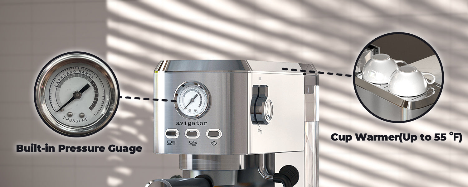 Barista Experience at Home: Enjoy the ultimate coffeehouse experience right from your kitchen with the Avigator Espresso Coffee Maker. Designed for true coffee lovers, this machine comes equipped with a built-in milk frother to create perfectly steamed milk and rich, creamy foam, allowing you to make authentic espresso, cappuccino, latte, mochaccino, or any other espresso-based drink you crave. Whether you want a bold morning espresso shot or a comforting latte in the evening, this coffee maker has you covered. The fast heat function ensures your machine preheats in no time, which means you can start brewing your favourite type of espresso in short time. You can precisely control the espresso amount/extraction time, anywhere between 20 to 33 seconds, for either a single cup or a double cup of espresso, ensuring consistent quality and taste every time.