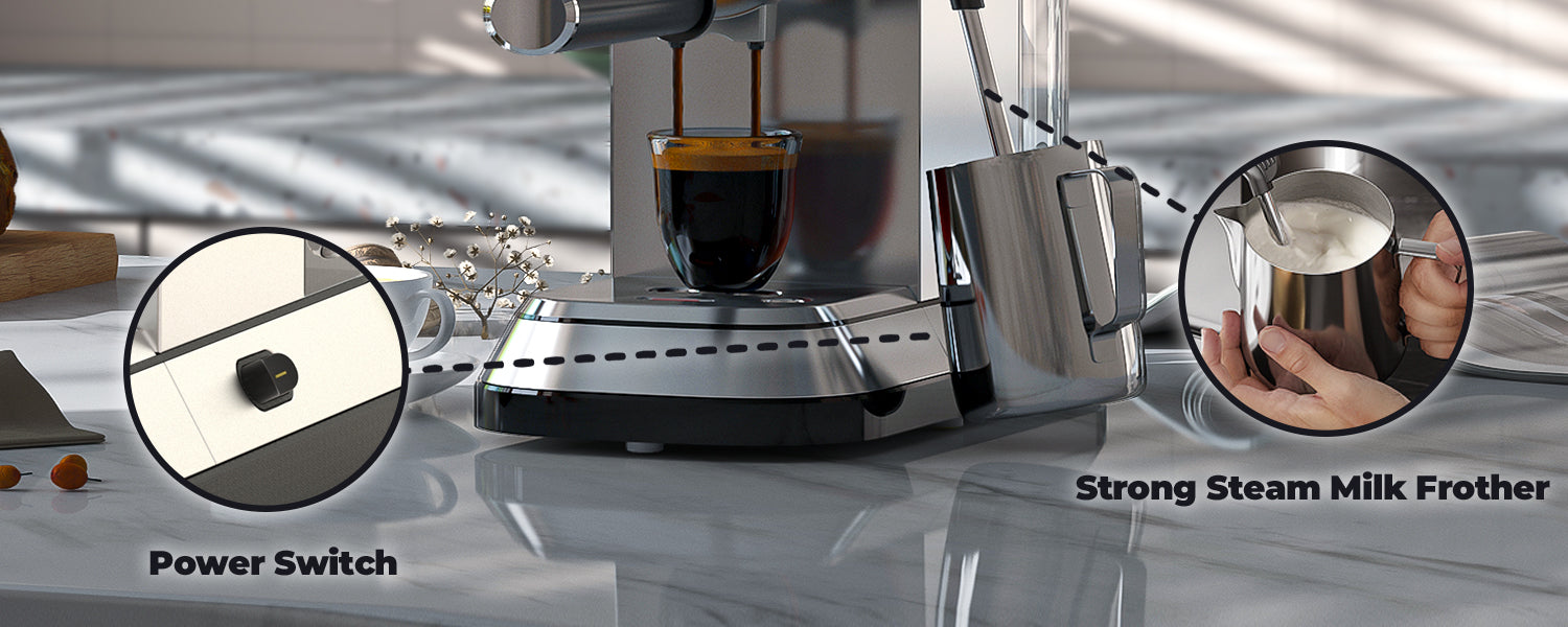 Smart and Convenient Functions: This best espresso machine is designed with smart functionality to make your coffee routine easier and more enjoyable. A cleaning reminder automatically alerts you when it’s time for descaling, helping to maintain hygiene, prevent limescale build-up, and extend the lifespan of your machine with minimal effort. The power-off memory function remembers the coffee mode you selected before the last power loss, so you won’t have to reset your preferences every time. Just power it on and you’re ready to brew your favorite drink instantly.